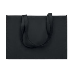 Shopping or beach bag in RPET non-woven with gussets and long handles. 80 gr/m².